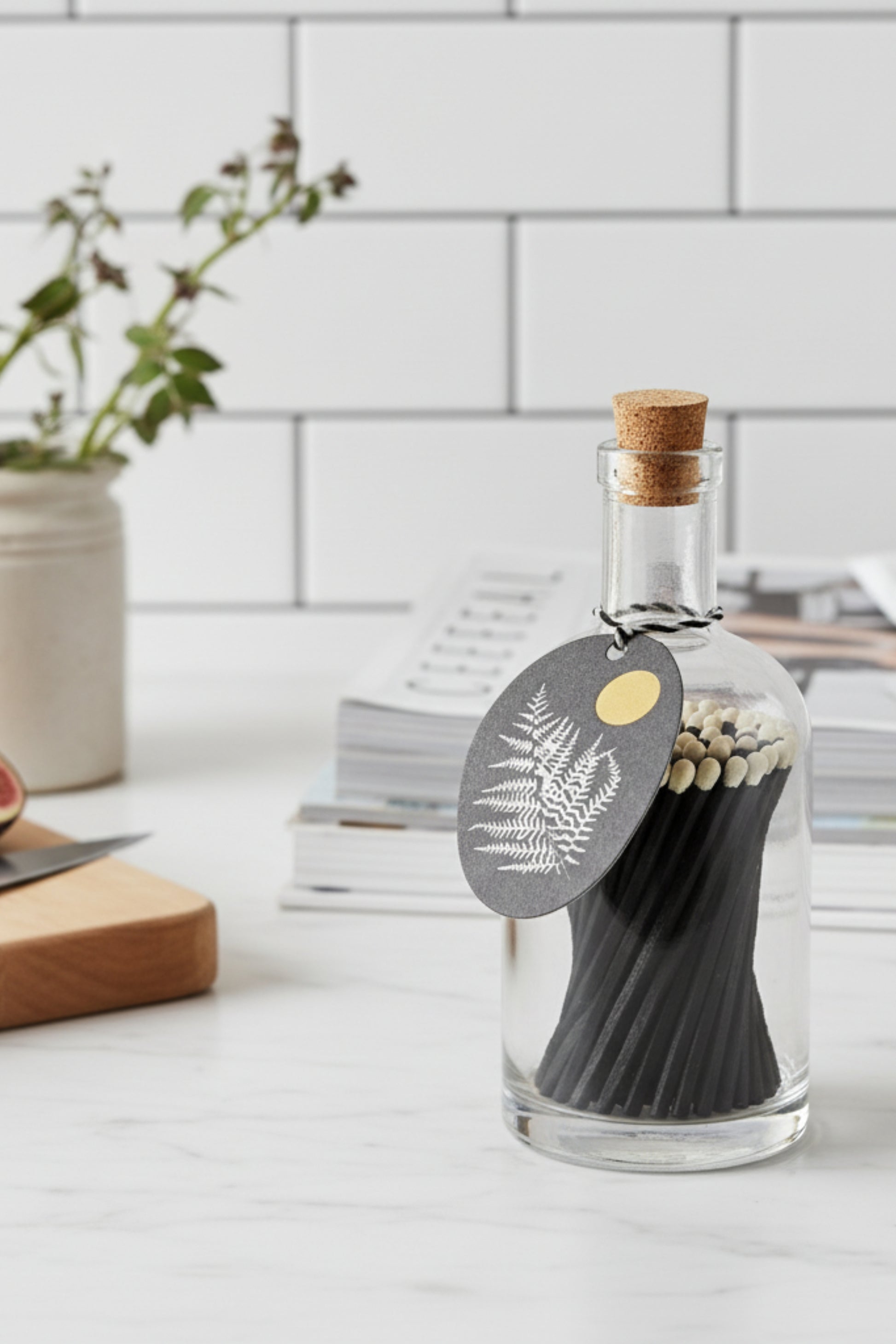 Strike a match in style. These extra-long (100mm) matchsticks come beautifully stored in a reusable glass bottle, making them both practical and decorative. They’re the perfect finishing touch beside your favourite candle or as a thoughtful addition to any gift box.